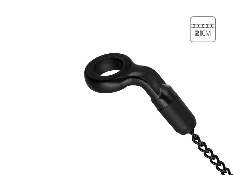 The connection with the buzz bar or a bankstick is ensured by a stylish black chain with an eyelet large enough for all common bite alarms.