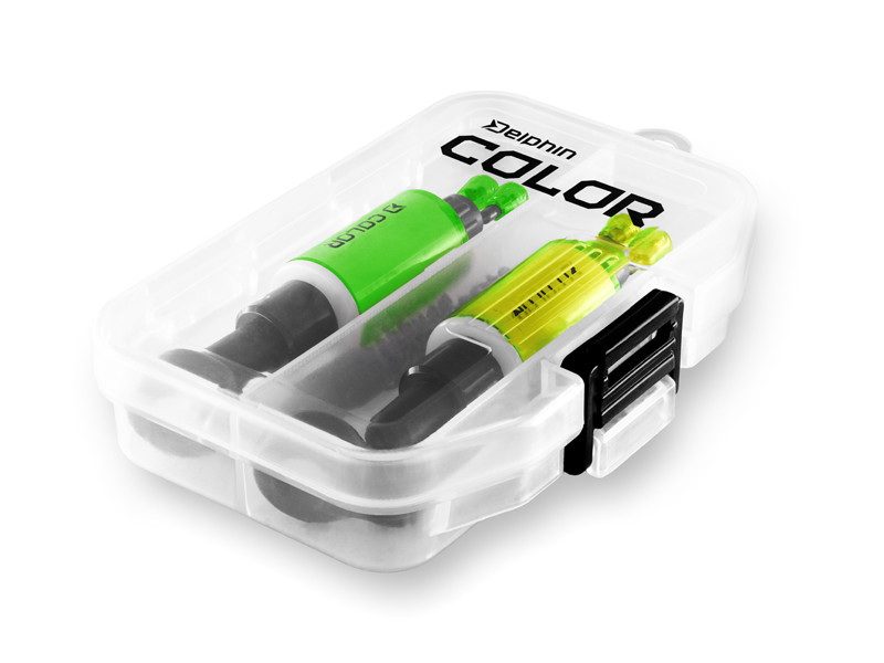 The Delphin COLOR set comes in a practical closable box that protects the indicators during transport and makes them easy to store in a fishing bag. You can choose between blue/red or yellow/green colour combinations.