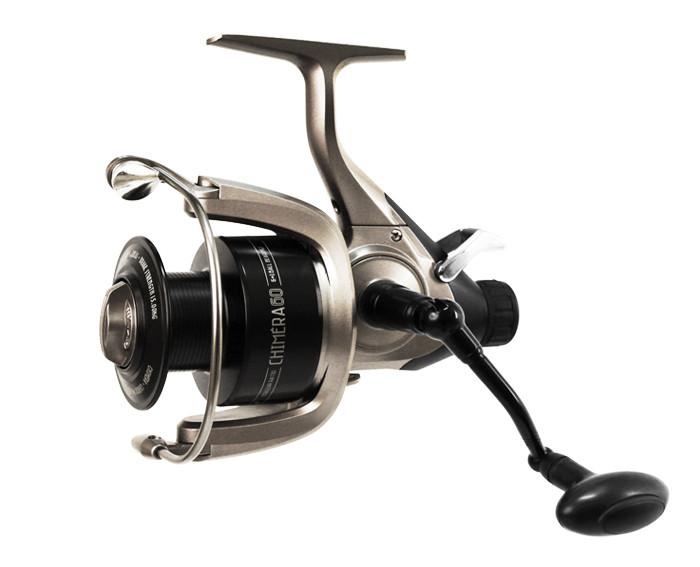 Chimera is absolutely and extraordinary new product from Delphin. It is an exclusive free run spool reel made of absolutely new components that guarantee its exceptional performance and properties. Its mechanism is fitted with seven bearings (6+1 reverse). The placement of bearings was specially designed according to years-long experience from our service department, which guarantees problem-free and extraordinary smooth run. All the parts are made accurately and fit perfectly, so there is no place for mistakes! Its biggest advantage is the carbon brake pads which are not offered by any of the competitors on the market. Felt mats that are usually used together with the size of the reel (60 tube) can make around 9 kg of braking force compared to unbelievable 15kg when using carbon mats. Apart from its enormous force, thanks to carbon pads the brake doesn´t stick in rainy weather or when getting wet, not even in the most extreme conditions, which offers higher comfort that you were used to. And there are still some more advantages of Chimera that must be mentioned. Its another advantage is also fast reeling of the fishing line – one turn of the handle means 5,5 turns of the rotor. The package includes additional tube with carbon pads, ergonomic all-metal handle as well as protective textile cover designed for safer transport. Excellent design which perfectly fits with any type of a blank is only a bonus in the eyes of the anglers. Approximate weight of size 40 (suitable for feeder) is 420 grams, size 60 is app. 470 grams.