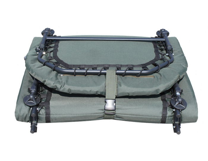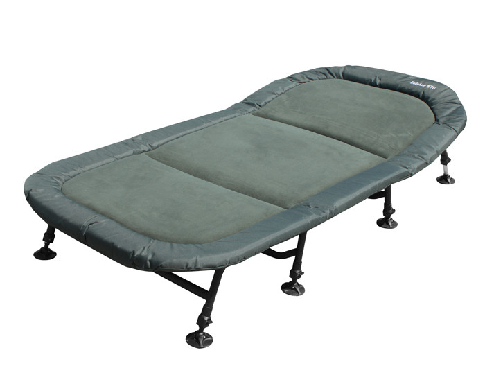 King size space placed on eight-legged construction, this bed chair is the leader of comfort in its category. The base of this bed chair is its massive, highly-stable construction that is really reliable and bears even the heaviest anglers. We have designed this bed chair with a main fo-cus on a maximum comfort for its users that is why all metal parts are covered by a thick and wide mattress with a great measurements 210x95 cm. It is the top class product in its category as there is no competitor in quality, make, design and materials used. There are two types of cloth used, one resistant, easy to clean cloth on the sides and soft fleece material in the mid-dle. The system of rubber belts on the bottom allows adjusting the firmness of the bed chair according to the angler´s preference. All eight legs are independently sliding with a proved mechanism. Legs in a head´s area are secured with safety lock. There is also a belt thanks to which you can easily fix the bed chair for transport. If you look for the top-class bed-chair, you will love Delphin ST8!