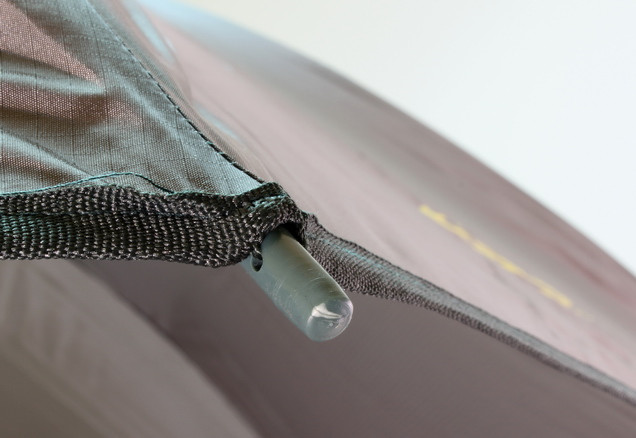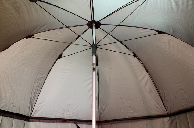 An umbrella with a side wall is an ideal shelter for short fishing trips. It is designed to protect against the sun, dew and rain. A canopy as well as side walls are made of Nylon. Seams are glued together by a waterproof tape to provide waterproofness. Available is an extended side wall that can be fitted to the umbrella by a zip around the canopy. The bottom part of the side wall is fitted with hitches to be fastened to the ground by pins which are included in the package. A piece of fabric covers the zips so that the umbrella is completely waterproof. The height and angle of the canopy can be adjustable.