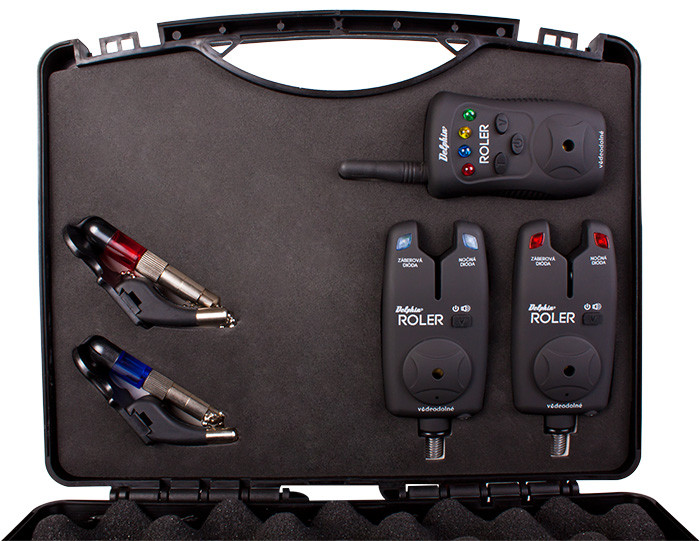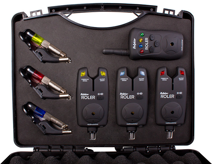 The set of DELPHIN thin electronic bite alarms and a receiver designed for acoustic and sound bite signalisation. Bite alarms allow setting volume, tone pitch, intensity and night light. They are water and bad weather resistant. A connector for linking illuminate alarms is included. Due to its new electronics, its coverage is more than 150m. The set includes new DELPHIN chain alarms which have their own place in the case for safe transportation. The number of alarms is the same as the number of bite alarms. Due to its new electronics and it´s great water-resistance, the warranty is extended for 3 years.