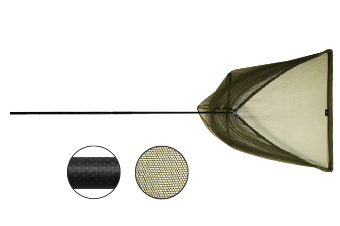 IKONA is a part of the highest landing net series made by Delphin. Its precisely and perfectly made design will persuade you about its perfection immediately. Its full-carbon handle with the weight of only 310grams including the metal inner middle part which is really minimalist and firmly fitted. 2-part handle´s length is 180cm which is the ideal length for our as well as foreign fishing territories. At the connector the top part is fitted with a rubber handle which makes using only top part from a boat much easier. Perfectly laid carbon fibres along the whole handle is really a designer´s gem. The head´s arms with their length of 90cm and spacious net with dense knitting can hold even the biggest carps. The net is resewed with a cloth corners and it will not get damaged even after a long time – that´s Delphin IKONA – landing net.
