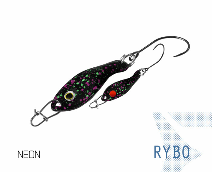 Delphin RYBO is a range of spoon lures designed for Trout Area venues. Their body is made of zinc alloy. They are equipped with quality single barbed hook BOMB! HardLure and FASTLOCK MICRO SNAP to ensure you won't lose any of your catch. These lures might be also very effective when fishing for small predatory fish on lakes or rivers. The fact, these lures are very tempting and attractive to predators is noticeable at first sight. RYBO spoons have a shape of a small fish and are fitted with an artificial eye, which perfectly imitates the live bait.