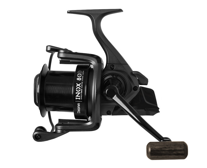 Delphin INOX presents a series of carp reels that will impress at first sight with their dark gray matte design with glossy black elements. Besides, the elegant design is completed by a precisely crafted wooden handle, which fits perfectly in the hand. The INOX series comes in two versions with the name 70D and 80D. The smaller brother with the sign 70D has more compact dimensions and lower weight, which predestines it especially for hunting in smaller waters. The 80D is a high-capacity reel that, thanks to its robust design, can handle even the most difficult challenges on your carp expeditions. It has a spool that can hold a really large amount of line and that allows fishing even at great distances and is also suitable for long-distance casting. The main difference, apart from the dimensions, is the design of the handle. The 80D has a standard mounting handle design in which the axle is guided through the body of the reel and tightened with a screw on the other side. The handle of the 70D model is fixed by screwing directly into the body of the reel, so it has not any free motion. Inside both models, there are 6 + 1 stainless steel ball bearings that ensure smooth running. The rotating head of the reel is provided with inconspicuous parts, which serve as a prevention against the line falling under the spool and its consecutive tangling. Both models have a system of slow oscillation called. "Slow oscillation", which ensures thorough placement of the line on the spool. Thanks to this feature, the line is unwound from the reel much easier when casting, which predisposes it to long throws. Internal components made of stainless steel in combination with resistance to saltwater guarantee a long service life and make it a reel even in the most demanding conditions. It is also possible to buy a spare deep and shallow spool for the basic package.