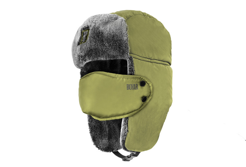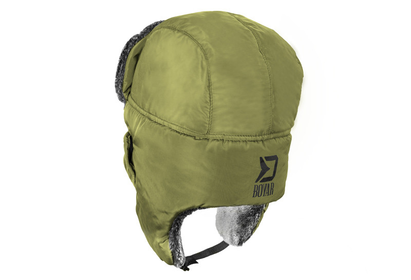 The trapper hat is designed to even for the greatest frosts. BOYAR has several advantages that will provide your thermal comfort during cold winter days. It is designed in khaki color with black details, which is an ideal headdress whether you are fishing or hunting. However, thanks to its stylish design, it is also perfect for casual days. The inner lining is made of a very soft and warm polyester black material. On the "ears" and above the forehead, this material acquires a gray shade with a glossy touch, which nicely complements the entire design of the trapper hat. In the lower part, there is a clip for fastening under the chin, which almost completely eliminates heat loss. An undeniable advantage is also the detachable covering of the mouth and nose, thanks to which you do not have to breathe ice air in case of the greatest frosts.