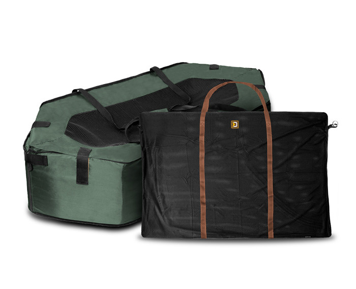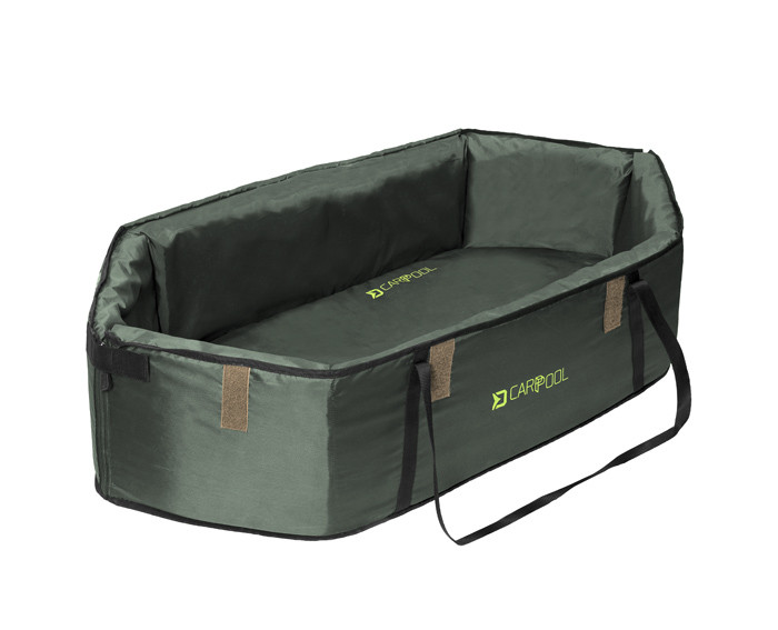 Delphin CarpPool is a premium unhooking mat available in green color. It comes with some very practical and innovative solutions. It offers high quality of used materials and craftmanship. It comes together with a handy bag suitable for transport. In addition, it is padded with a thicker and stiffer foam all the way round and also equipped with a thicker mattress at the bottom, able to protect even the heaviest carps. The upper part is designed to secure the catch, in case, it will try to jump off, which consists of a large visor made of rubber mesh attached to couple of places by Velcro fasteners. On the bottom, there is a reinforced rubber mesh, which allows to drain out the water faster. The removable mattress is attached to the bottom by Velcro fasteners, which is quite handy, when letting it out to dry. You will also find zippers on both ends, reinforced by Velcro fasteners. These are very handy when it comes to releasing of carps back into the water. The sewed nylon handlebars are designed to create an X-shape underneath and providing more support all the way round, when carrying heavy carps. Delphin CarpPool is a unhooking mat without any compromises, making it easy for the angler to handle and release even the biggest carps.