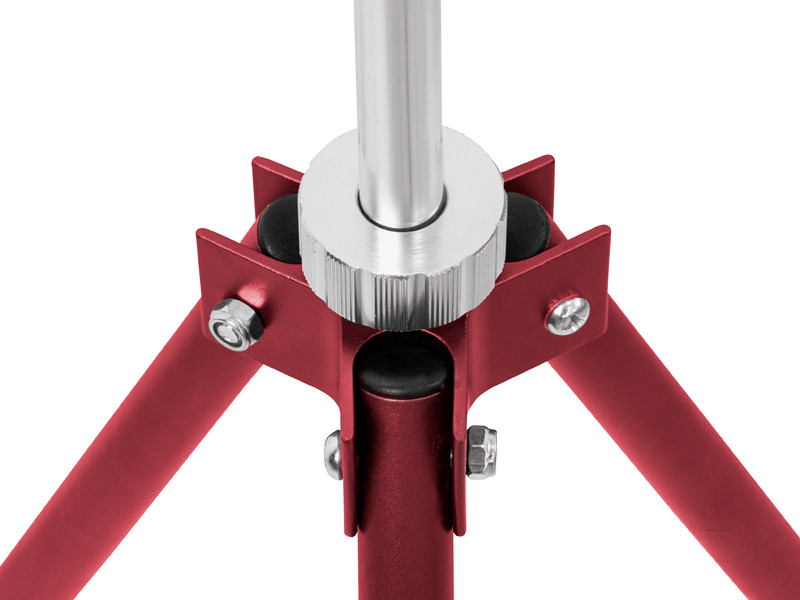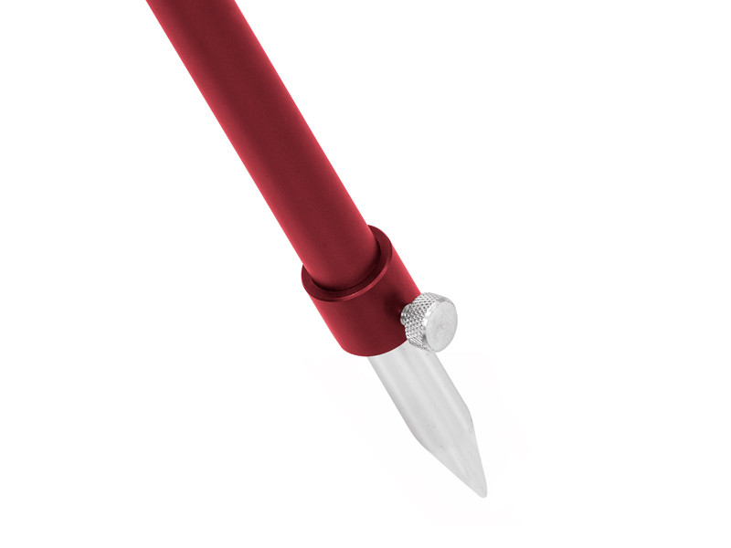 Compact feeder rod stand with three support legs, designed in burgundy colour characteristic for Delphin feeder products. Construction of the stand is made of aluminum without the use of any plastic parts. Such a design minimizes the possibility of damage, resp. breakage of the parts and guarantees a very low weight. Excellent stability of the stand is ensured by three telescopic legs, preventing its arbitrary from overturning during shots or wind. The legs are finished with sharp points allowing them to be pushed into the ground allowing the stand to achieve even higher strength . Thanks to the telescopic legs, it can be suitably adapted to an uneven terrain. In the middle of the stand is a ratchet, its height can be adjusted by means of a massive screw mechanism. It reliably prevents any arbitrary movement after tightening. Buzzbar has a universal thread, allowing attachmnet of any feeder rod holder, crossbar, or signaling device. Despite its inconspicuous transport dimensions, the stand can be extended to a respectable height of up to 150 cm by means of telescopic legs, a retractable central mechanism and also a telescopic strut, which will surely pleasantly surprise many users. Such variability combined with effective design makes it a very practical product at a very affordable price.