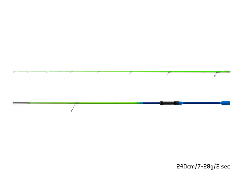 Different sizes fit all spin fishing techniques, from boat to shore fishing. First three guides have yellow colour for easier bite indication. All the guides are specifically distributed on the blank to develop the potential of the rod. It also has a DPS reel seat which is able to accommodate even bigger reels. An unusual combination of green and blue colour makes this product really striking. A stylish blue EVA foam split grip will take the comfort during manipulation to the next level.