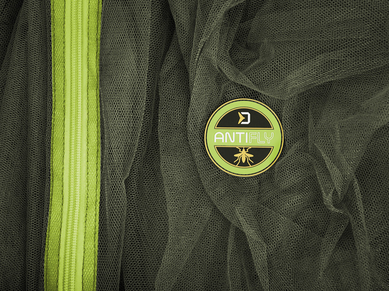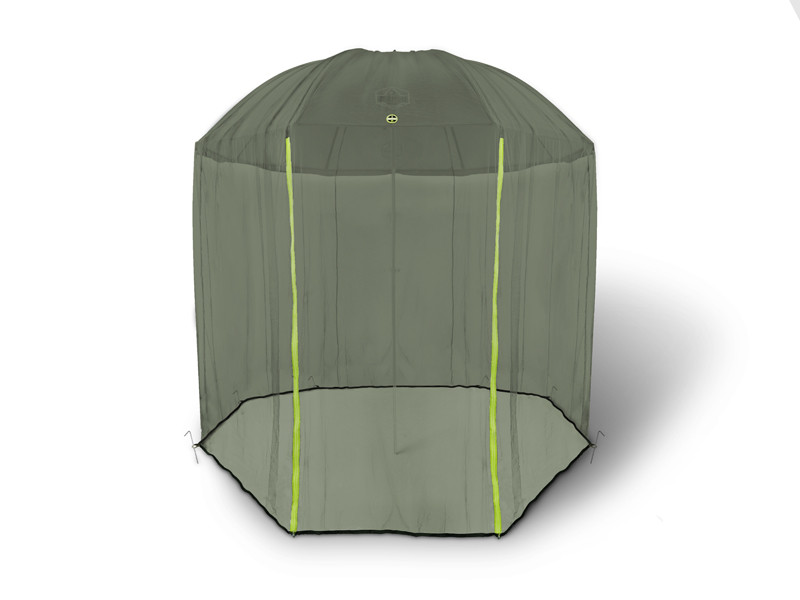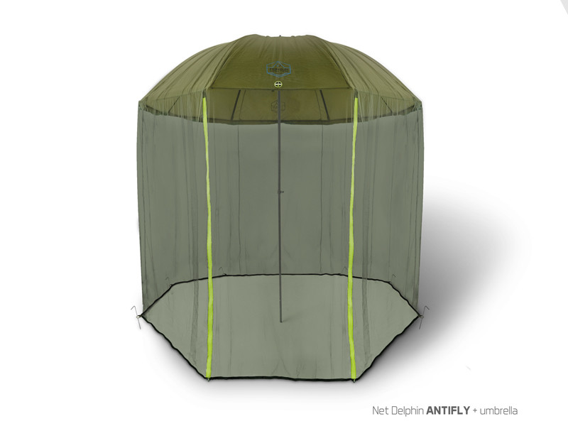 A highly effective protection against mosquitoes by the river. Mosquito net Delphin AntiFLY has a standard size that fits almost all fishing umbrellas available on the market. The whole system relies on a central opening which comes on the top centre of the umbrella and 8 pegs (included in the package). The entrance has two high-visibility zippers for better orientation at night or during poor visibility. A fine net will grant you the best protection against nasty insects.