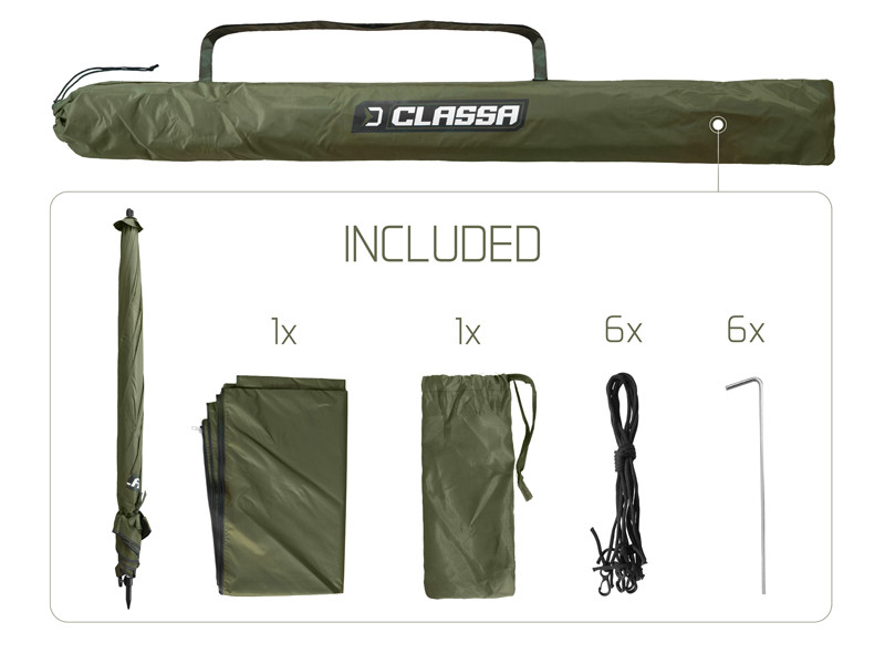The umbrella Delphin CLASSA is an ideal choice for short fishing trips in both sunny or rainy weather. The canopy is 250 cm wide and the sides offer good protection against the rain or the sun.