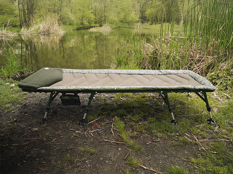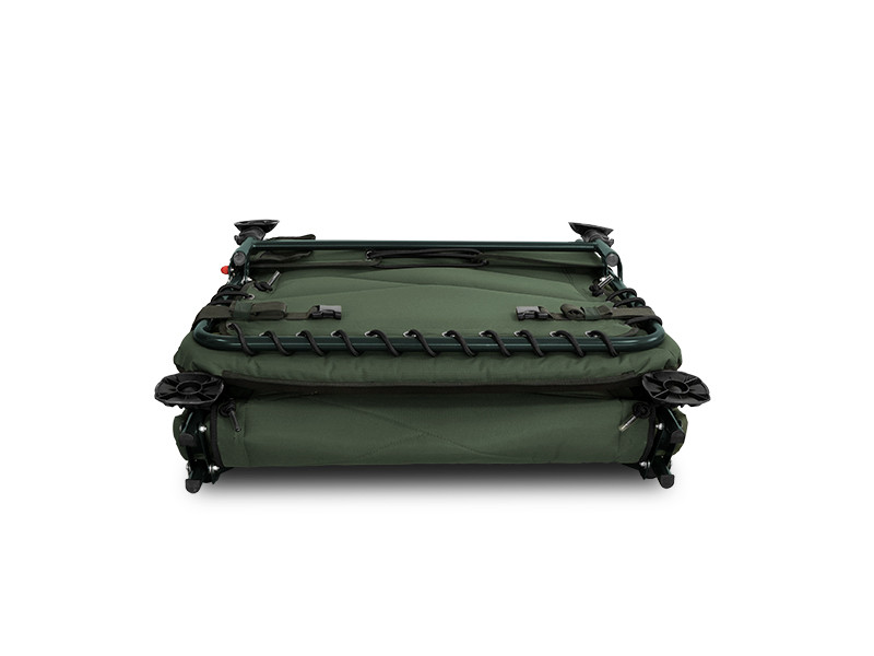 The base of the bed is a stable and lightweight structure. Plus, it’s durable against mechanical damage. The structure is covered in a heavily padded quilted mattress with a fleece surface making it warm and soft to touch. It’s also covered with a durable 600D fabric in C2G design on the sides. The headrest has extra green fleece padding for an even better comfort. The centre part is reinforced from the bottom and it’s possible to adjust the hardness of the mattress by a rubber strap.