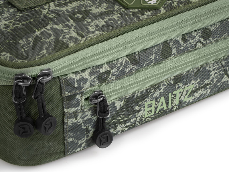 The walls and the lid are properly fitted with a 6 mm thick padding. The lid of the bag has a mesh pocket to store additional fishing accessories. Another advantage is a smaller pocket in front to store needles or stoppers for a quick rig assembly.
