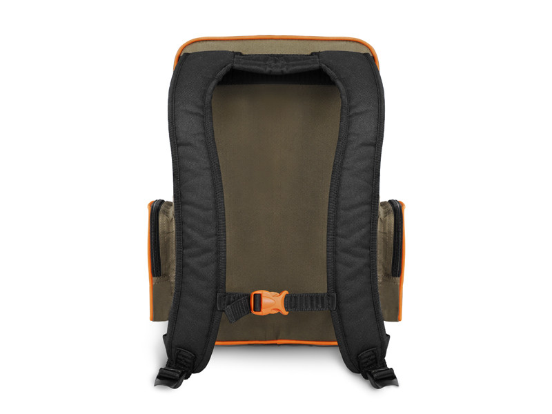 The backpack is designed to provide ample storage space for bait boxes, accessories, or any other equipment needed for successful fishing. The main storage can be accessed via a zip at an angle. It also has two zip pockets on the sides. In comparison with conventional backpacks in a similar price range, this one has a zip pocket in the front containing a plastic box suitable for lures or feeder cages. This backpack has a transparent cover so you’ll always see what’s inside.