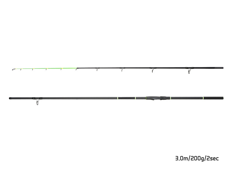 The conical blank is made of densely laid carbon fibres to increase strength and durability for fights with powerful fish. At the end of the blank, there is a fluo green tip for better bite detection that balances the rod action.