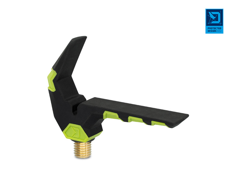 A high quality front rod holder designed in colours of our innovative feeder series Delphin Reaxe. It has a special shape with an extra long arm to keep your rod in place even in case of an aggressive bite.