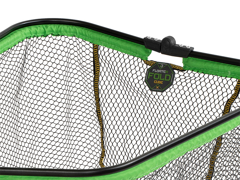 Floating square-shaped landing net head from REAXE series with a light but sturdy black aluminium frame. The net of the FloateR FoldCUBE is covered in rubber, it doesn’t absorb the water and dries quickly. Plus, it’s covered with a green fabric all over the frame on the bottom side to increase durability.