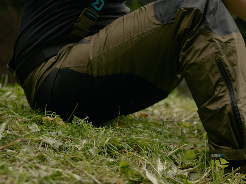 One of the main advantages of the pants is their higher waistline, which protects your lower back area. There are durable patches of black fabric on the knees and on the backside, where the garment is stressed the most. Thanks to elastic braces, the pants will fit perfectly and won’t slide down. They have a quality zips, 2 metal press-studs, and belt loops. The lower part can be adjusted with a hidden zip and a velcro strap.