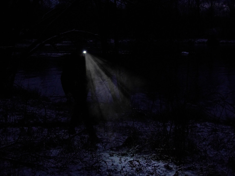 A practical camouflage baseball cap fitted with a LED light in the front brim is designed for all passionate anglers.