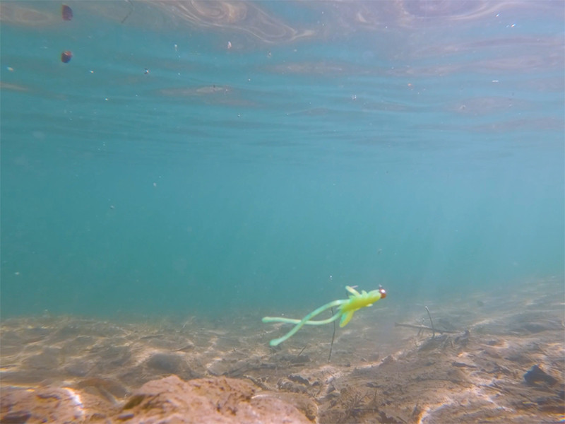 The unique shape of the lure by our designers represents an original combination of a water insect and a crustacean to create a lifelike imitation underwater. The legs on the body are elongated to create a movement that’s irresistible for trout, perch, chub, or other fish such as white fish.