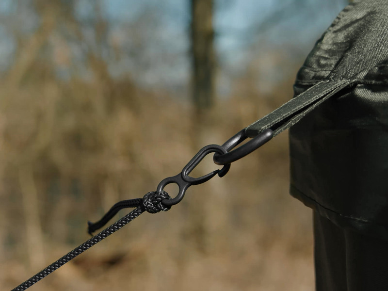 To set it apart from the competition, DualiX STABIL has several useful features. There are more fixation points, plus it comes with sturdy pegs – these are often not included with other umbrellas. To improve stability in strong winds, each corner and the centre of the dome has plastic eyelets for guy ropes to secure it to the ground that are also included in the package. Plus, the structure of the dome is reinforced, and the frame is much sturdier than in other umbrellas. When you stake it out, it’s very stable and able to withstand even adverse weather conditions that can surprise you on the water.