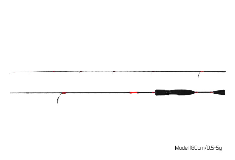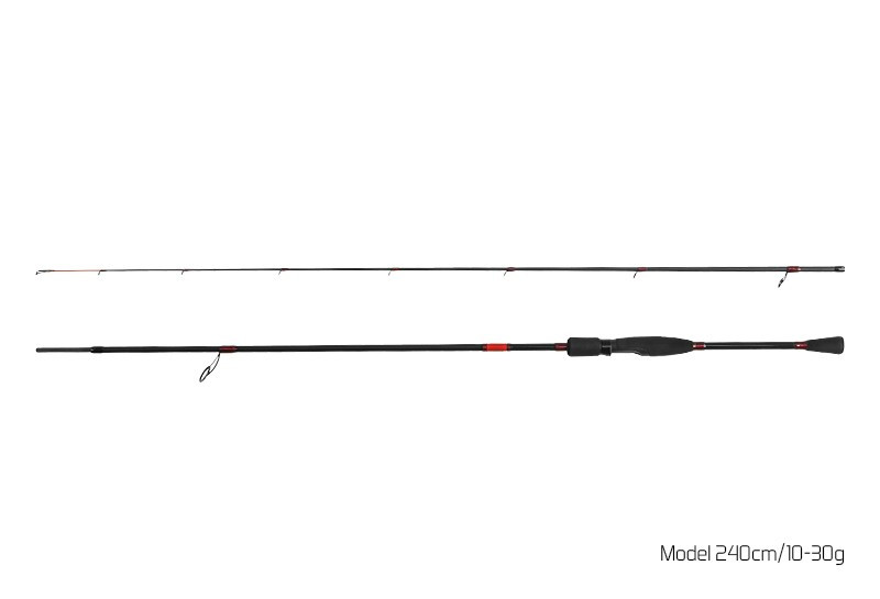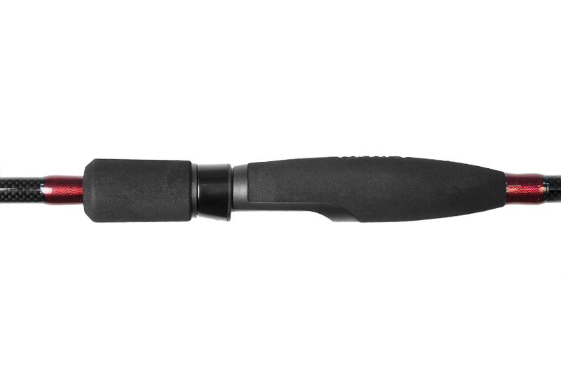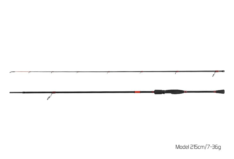 The set of great, light and fast spinning rods BANG can surprise all, even the most experienced fishermen by price and its quality ratio. Thanks to an ergonomic handle from EVA foam the tod fits in your hand perfectly. The split handle and its shape help to very good balance of the BANG series rods. You don´t get tired even when you cast repeatedly for several hours. You will enjoy every second spend by fishing. The cone of 24T carbon blank creates A-action with a very solid back and sensitive tip of the rod. The bite is immediately felt on the handle which allows you fast strike. There is a read contrast part between two SIC guides which is good for a better identification of bites. The other parts of the rod are in the combination of blood-red colour and dim black blank which underlines the sport character of the rod. The exactly set size of SiC guides and their place allows exact casts of the lure to a fishing area.
