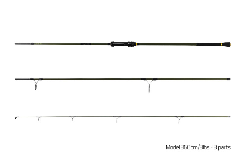 You will not make a mistake with NEXIS. This perfect carp rod with a dim blank of army-green colour and with black glossy details and golden graphics will visually attract you. Its appearance is underlined by not traditional, massive, fully-metal saddle for the reel. It has a double securing pin for fastening and its construction is built in a way so that it doesn´t let you down even in extreme loading. The comfort is created by parts made of EVA foam. NEXIS has got a thin 24T carbon blank of high quality with fully-parabolic action and provides a great compromise between long casts and pleasant braving the fish. Double-foot SiC guides are really resistant. The handle of the rod is perfectly finished with a pear made of EVA foam with a slope from black shrink tube material thanks to which it fits your hand perfectly. Nexis is the rod which is a great fun.