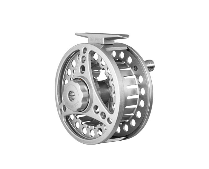 Delphin FLAYKA are fly fishing reels made completely out of metal with a wide spool. The matted silver colour doesn’t cause reflections in order not to scare away the fish. It is characterized by a very strong and precise drag adjustment knob with a very wide adjustment range. This type of drag adjustment is better-than-average for the price range of the FLAYKA reels. The spool is super quiet when reeling in and when the fishing line is being dragged out you will hear a pleasant “creaking”. The reel operates at a very smooth pace thanks to the 6 roller bearings. Thanks to the aluminium alloy the FLAYKA reels are extremely lightweight, so you can enjoy fishing for trout, linden or any other kind of fish without getting tired. The reel is suitable for both left and right handed users! You just need to change the position of the internal component containing bearings. The 3/4 size is designed for lighter and shorter rods, when fishing on streams and smaller rivers. The size 4/5 finds its place when fishing with longer rods and in waters that require a reel with the capacity to carry a great amount of fly fishing line. The FLAYKA logo is located in the lower part of the reel.