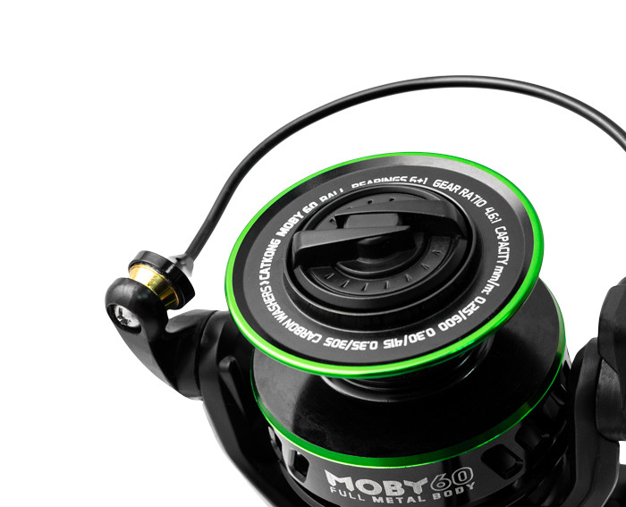 Extremely strong, a whole-metal reel always prepared for even the biggest challenge! The target group are fishermen who are keen on catfish fishing or fans of sea fishing. Sea fishing is possible as we have completely adjusted mechanism for salt water. Catkong MOBY is perfect to be used with Catkong series rods. When fishing beyond the point of average loading, you must be able to rely on your reel for 100% at any time. Even basic model of MOBY has carbon brake pads which increase the effect of the system as well as they are not influenced by changes in weather, humidity compared to common felt pads. The inner mechanism is well- dimensioned and strengthened in the way so that you do not notice the limits of reel even after long-time use. Gearing rate is 4.6:1 and there is a set of 6+1 high-quality bearings inside. The handle knob is also made of metal and it is fastened via inner thread which actually is the strongest possible connection without any backlash. The handle is very comfortable and will fit into