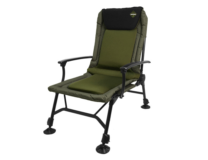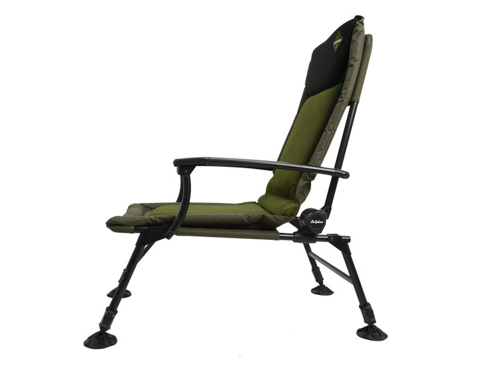 Extremely comfortable chair made by Delphin will attract you immediately. The middle part of comfortable mattress is covered by a soft, but really resistant textile. Their main advantages are its easy maintenance and very low water absorbability. In its head part you can find so called memory foam which adds to its comfort. On its side the used textile is thicker and its main task is to make the resistance of the mattress higher. Thanks to the joint you can adjust the position of the backrest. A strong construction can even carry bulkier carp lovers and provide sufficient space and high bearing capacity. A support arm makes the chair even stronger and its adjustable legs are a necessity when being used in worse surface. Delphin GRAND is such a comfortable chair that you won´t want to stand up even when you notice bites.