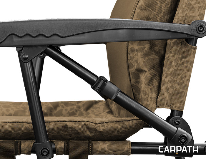 The bestseller by Delphin in a new camouflage design Carpath. It is different from most of armchairs offered in our market as RS has perfectly and ergonomically made back rest thanks to which your back will not hurt even after several hours of waiting for a bite. Reinforced hip rest adds to perfect posture of your body and allows your back to rest. Delphin RS is made precisely into every detail. You can adjust the arm rest simply and fast by sliding them. This simple and reliable system enables to change the position of the back rest without the need of standing up. The cloth is really reliable towards any dirt or damage. If it happens that there is a damage or dirt, it can be easily cleaned and removed by brush and tepid water. At the best is still yet to come! The back part of hip rest can be zipped by zipper and two heaters Delphin ARCTIC can be placed inside. Cold nights will not be a problem any longer, but other way around, it will become pleasure by water with a warm hip part. These heaters are not included in the package. Naturally, the perfect and precise make is guaranteed with this extraordinary chair!