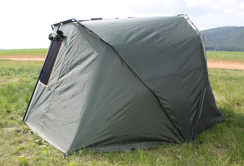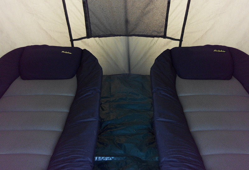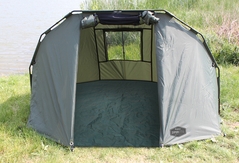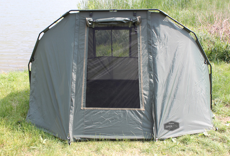 ZIPER is an unbeatable bivvy at a great price/quality ratio. This Delphin bivvy is designed for a very comfortable stay of two people. Thanks to its special construction with nearly vertical walls that enlarge the usage of corner areas so that two big beds can easily fit there and there is app. 40 cm space for crossing, depending on the width of the beds. Bivvy ZIPER is built on a great wide-wall-tube construction which lowers the transport size and weigth while keeping the same resistance. These matt black tubes are connected by massive plastic connectors which make building the bivvy really easy and quick. Bivvy´s cover is made of dark green resistant cloth great for its steam penetrability and perfect design and make. The main focus was placed on its water-resistance achieved thanks to all modern technologies. All the seams are under-glued and tested afterwards. The anchoring parts of the bivvy are the whole-metal guides that come together with massive metal pegs with plastic heads and threads for easier drilling into rough ground. Thanks to this system ZIPER is a very stable bivvy even in the worst weather conditions or storms. Bivvy´s floor is removable by Velcro zippers place inside the bivvy so it can be used in placed not suitable for staying in a bivvy. ZIPER provides you a great variety of usage and individualisation. Multi-layer entrance door can be fitted with mosquito net, plastic window or cloth. Rear window can also be used differently and it allows quick ventilation of the bivvy. In case of short trip, front wall can be rolled into sides and fitted by side tapes. When using ZIPPER, you also get a great universal shelter that protects you from the Sun´s rays. The bonuses are two rod´s holders placed in the front. The bivvy is packed in a transport bag. ZIPER Zone is a proof that even Professional bivvy doesn´t ruin your budget.
