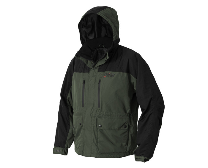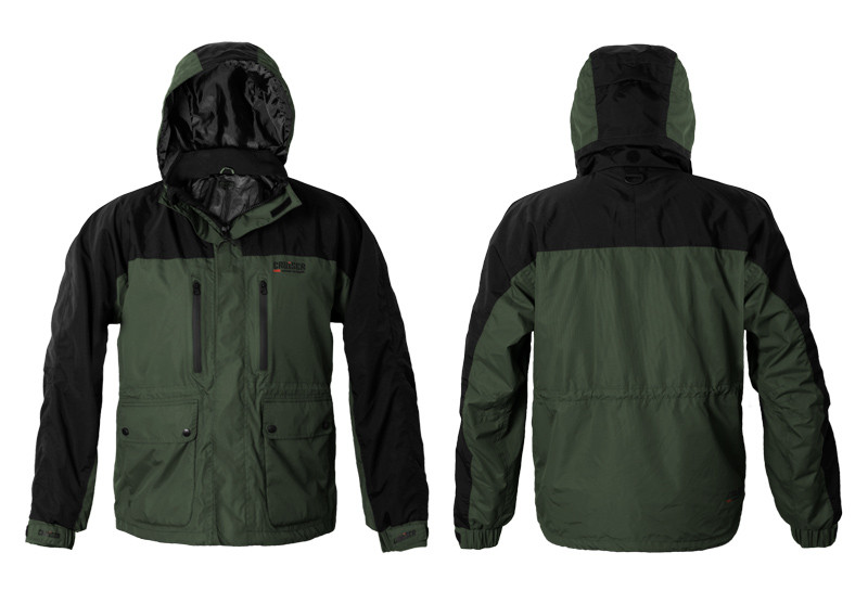 The Pro clothing range offers the excellent quality we all need when fishing. The outer layer of the Delphin CRUISER Pro jacket is made of Polyester 320D Taslon material. A polyurethane (PU) coating is applied from the inside of the fabric, all seams are backed. Water column is up to 5000 mm and breathability 3000g /m2/24h. These parameters are quite sufficient for our climatic conditions, the Pro clothing is excellently resistant to and protects you even from heavy rain. The hood can be adjusted with a rubber band and rolled up and secured with Velcro. Thick zip fastener is covered by a hem against the penetration of cold and water and this hem is fixed in five places with a Velcro. Sleeves with rubber patent can be tightened with Velcro straps. Two chest pockets are provided with a waterproof zip fastener. These pockets have a warm fleece material on the inside. The main pockets also have a fleece layer inside, so it is an ideal space for warming up. These pockets are doubled, the front part is overlapped with a wide hem and there are also two press studs here. There is one pocket with zip fastener inside for especially sensitive things like phone, documents and so on. The jacket can be tightened in the waist as well as in the bottom part. There is a plastic D-ring in the rear part under the hood for hanging, e.g. landing net. The Delphin CRUISER Pro jacket is made in green and black colour. Not only fishermen, but also hunters and all lovers of nature will surely appreciate its parameters. When washing, it is recommended to use special washing detergent for functional clothing, wash at max. 40 °C, not spin-dry and, if necessary, use an impregnating detergent to restore the durable water repellent (DWR) finish of the outer material.