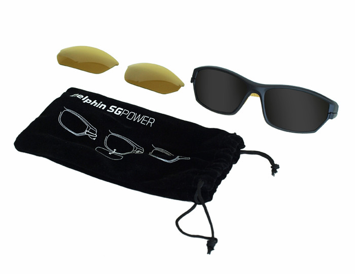 These high-resistant glasses with black and yellow design, when buying them you get two for the price of one! SG POWER comes in a set which includes 2pcs of yellow glasses and 2pcs of grey glasses. Their rim is designed in the way that the glass can be changed very simply. There is a safety lock on the strap that needs to be pulled and you can open the rim to change glasses. After you have changed the glasses, just close the safety lock again. With SG POWER there is no need to carry two pairs of glasses for different light conditions as grey glasses are great for high-intensity sun rays and are also great for driving and the yellow glasses are perfect for weather conditions such as when it rains or there is a fog. SG POWER comes in a textile pocket with the size of 18x10cm, but Delphin SG Case can be additionally bought, too.
