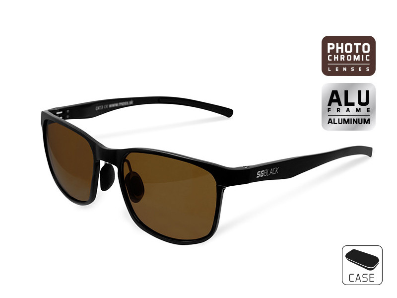 The newest generation of sunglasses in three different makes which can be used during your fishing trips as well as during your everyday activities. Thanks to the design the sunglasses will perfectly fit most of the people not only in practical, but also in visual way. SG Black series offer completely aluminium frame anodising into black matt colour. AS the aluminium was used, the glasses are extremely solid, but at the same time very light (only 28g). The frame is perfectly mechanically made and even the temples of the glasses are not loose at all. The ends of the temples are rubberized from their inner side so that the glasses are seated well even during practising sport activities. The bridge is rubberized too, so it fits your nose perfectly. It provides sufficient comfort and in addition to this, the glasses can be easily bent which makes them suitable even for people with wider nose. The high quality of the glasses is underlined by its hard case made of the combination of metal skeleton and eco-leather.