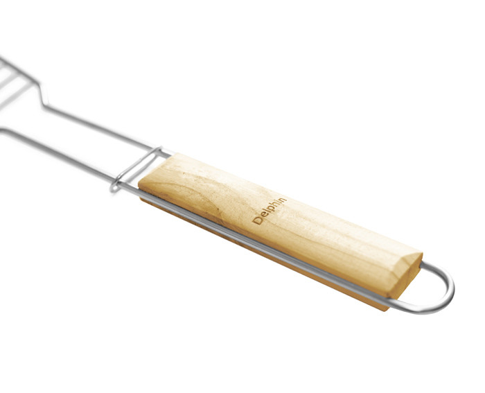 A grill (gridiron) designed especially for fish preparation. Put the fish between the two folding parts of the grill and put it over the fire. Don’t forget to turn the grill! It comes with a wooden handle and the metal parts are protected against corrosion. Thanks to the double setting of its individual parts, the grill can be used to prepare fish or meat of different types of thickness.
