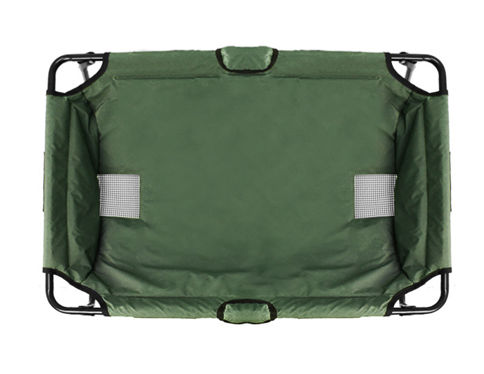 A so called cradle is a great accessory for sport anglers who like to protect and keep safely their catches. This cradle Delphin C-PROTEKT is very compact and thanks to its folding mechanism its size is only 70x50x12cm after folded. The whole cradle is built on a tube construction which 19mm diameter of the tubes. The bottom is created by three pairs of joint, folding legs that provide great stability of the whole cradle even when fully loaded. A very strong and non-absorbing textile was sewed onto the construction and in its bottom part there are two openings (12x12cm) for letting water away. The inner size for the catch is 95x55x20cm which is enough for even the biggest fish. The folding mechanism is covered by textile in its middle so that the anglers or the catch cannot be hurt. The whole cradle can be covered by additional case that can be fastened by Velcro. This case is included in the package and guarantees even better safety of the catch. The cradle is additionally packed in a transport case.