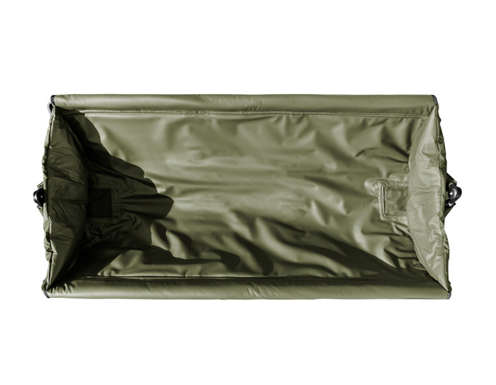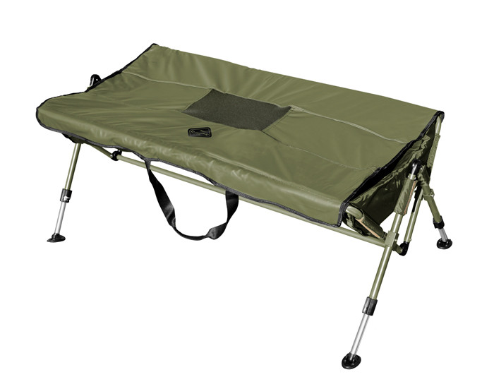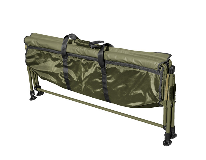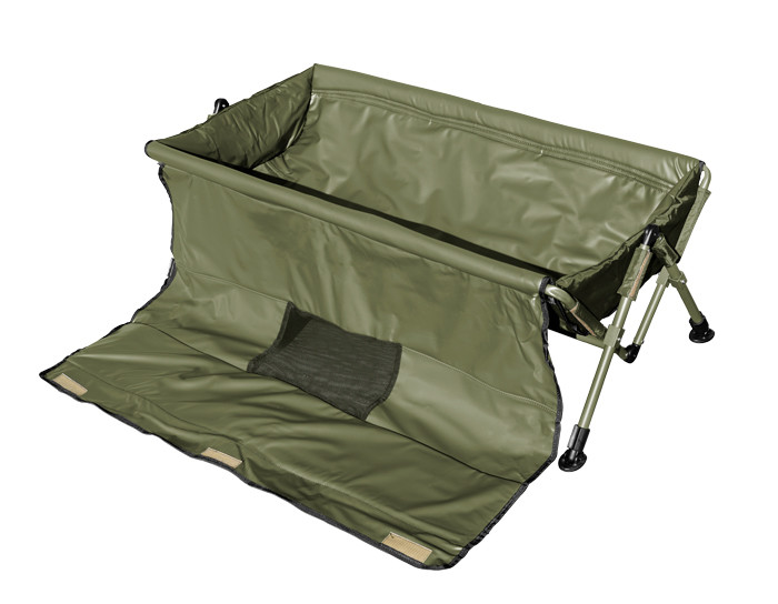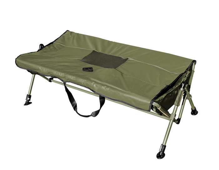 Extremely spacious prolonged version of model Delphin C-RADLE, this XXL model is designed for the biggest carps or amurs. Model is built on verified scissors system of opening/closing construction. This makes this cradle very stiff and at the same time very compact. This model is also widened with its telescopic legs which allow us setting required height, or to equalize roughness of the ground. The construction is made of tubes with the diameter of 20mm. Fast-drying and well-maintaining bed is made of rubberized material. In the corners on the bottom part of the cradle there are two outlets for outflowing water. These outlets are equipped with closable DROP System from their bottom part. This system gives each fisherman two options whether the water after pouring to the cradle will outflow fast or the system will be closed and the water will only be dripping out slowly. Thanks to this the catch can be submerged into water directly. DROP system and continuous dripping of the water will prevent water from being overheated and your caught fish will not be in a danger. In the upper part of the cradle there is rubberized cloth overlap with an eyehole. There is a one-side attachment by Velcro zip. Thanks to the foam sewn into it there is a possibility to pose with your catch while you are kneeling on the overlap. The cradle also has textile handle for easy transport.